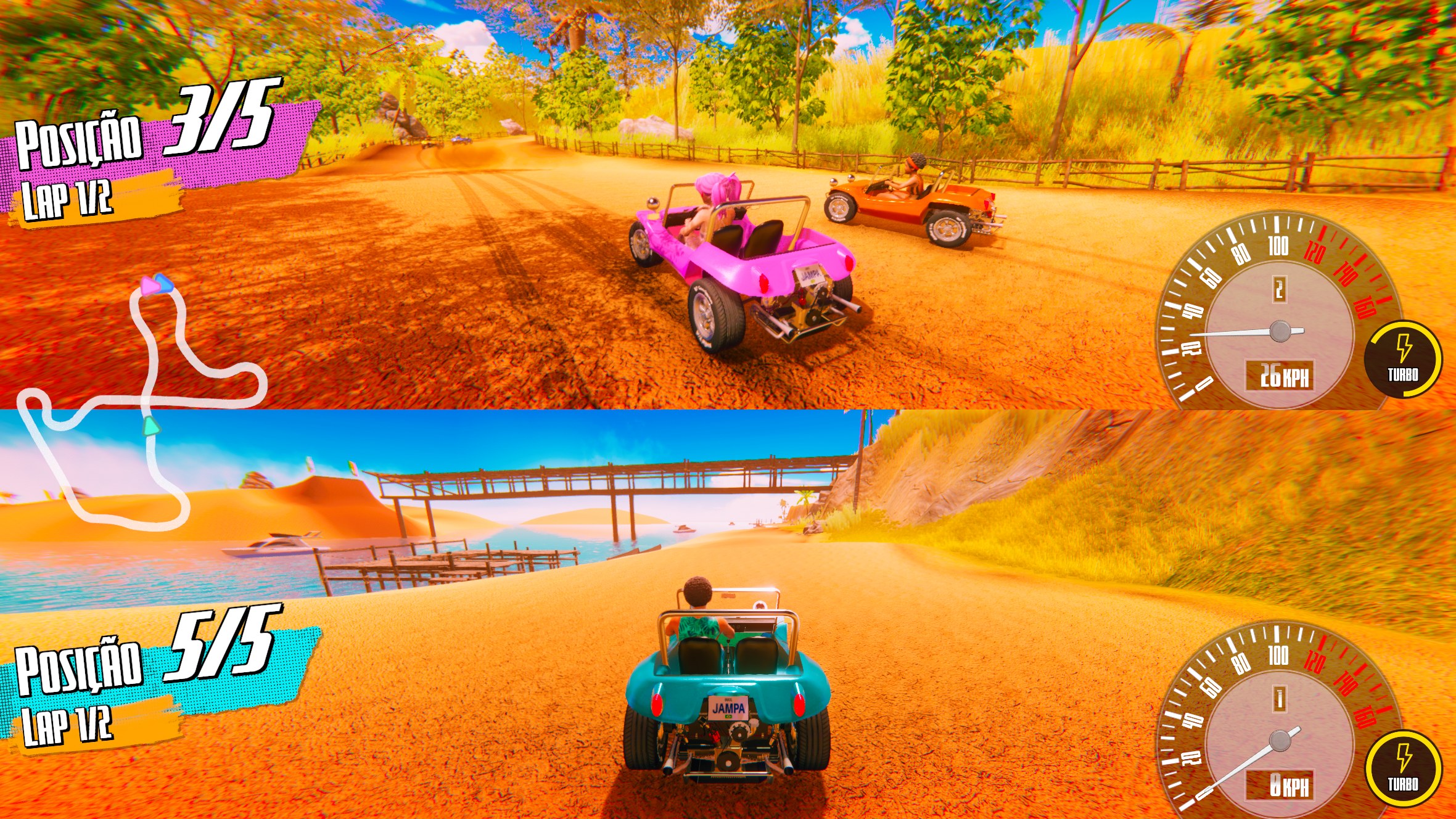 Jampa Buggys is a 3D local multiplayer racing game set on the stunning beaches of Paraíba, Brazil. Inspired by the traditional dune buggy rides along the northeastern coast, the game delivers a lighthearted, fun, and accessible experience for players of all ages.